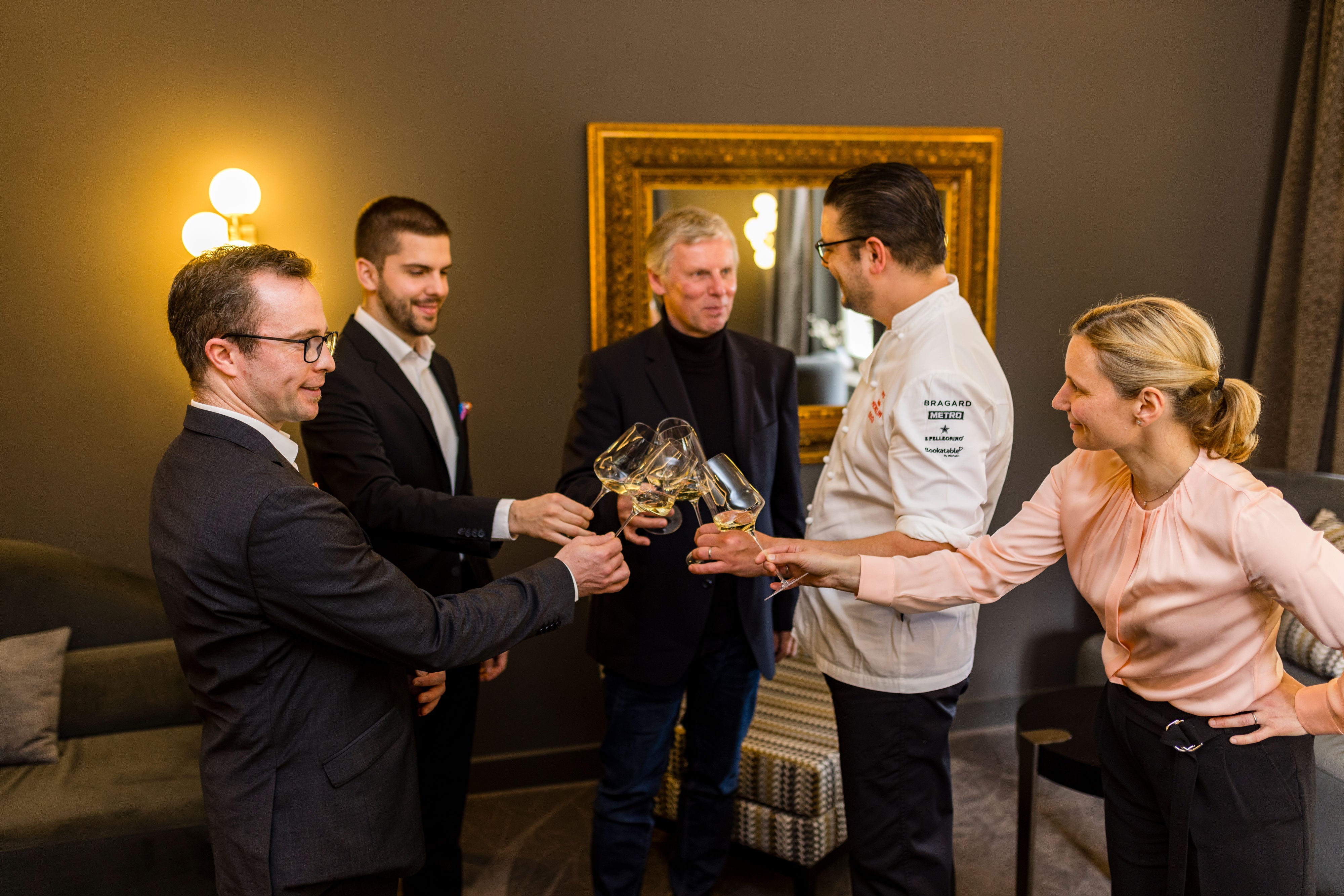 The charming Waldhotel Sonnora is surrounded by rolling hills and a lovingly landscaped park. The white house in the Rhineland-Palatinate village of Dreis radiates a soothing calm. "Arriving" here means "relaxing and feeling good." We receive a friendly welcome and take a seat in the lounge, which is something like the antechamber to 3-star heaven, the gateway to culinary bliss. For the Waldhotel Sonnora belongs to one of the best chefs in the world: Clemens Rambichler. The Michelin Guide describes him and his wife Magdalena as an "exemplary host couple," and we can only agree. We meet Magdalena Rambichler and her two sommeliers Sebastian Boucher and Oliver Adler to talk about love for gastronomy, passion for the right glasses and the perfect breakfast.