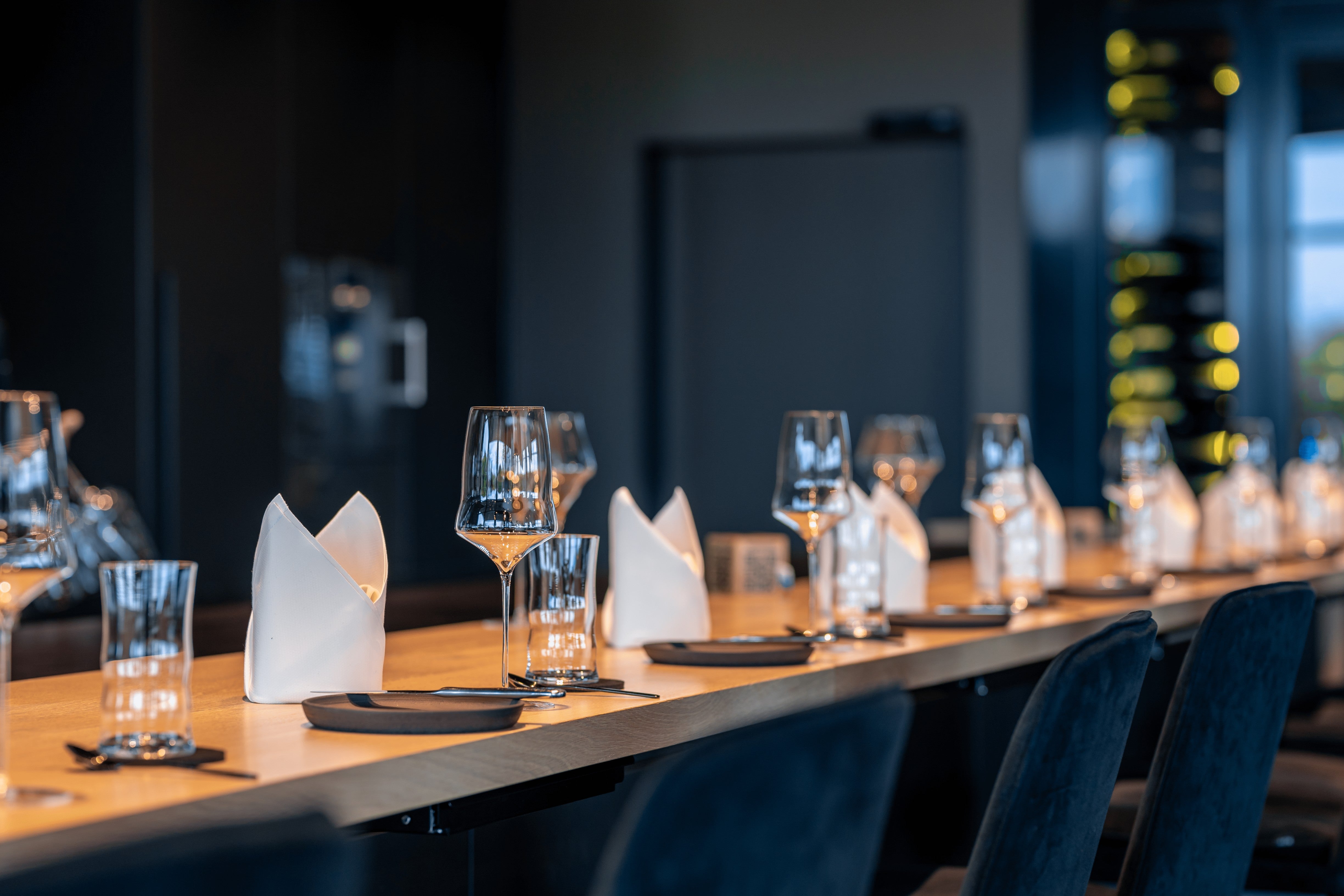 Für Gäste, die noch mehr Erlebnis haben und hautnah in der Küche dabei sein wollen, haben die „TROYKA“ Gastgeber den Josephinenhütte Chef’s Table entwickelt. „Hier sitzen Gäste an vorderster Front und schauen unseren Köchen beim Werken zu“, sagt Ronny Schreiber. Als besonderes Highlight gibt es nur auf diesen Plätzen die Gläser von Josephinenhütte. „Für mich sind Gläser der wichtigste Gegenstand auf dem Tisch eines Restaurants. Das richtige Glas ist ein entscheidender Faktor, um ein perfektes Erlebnis zu kreieren. Wenn ich Weine in die Josephinenhütte Gläser schenke, schauen die anderen Gäste manchmal ein bisschen neidisch und wollen auch probieren. In diesem Fall müssen sie uns wieder besuchen und einen Platz am Chef’s Table buchen.“