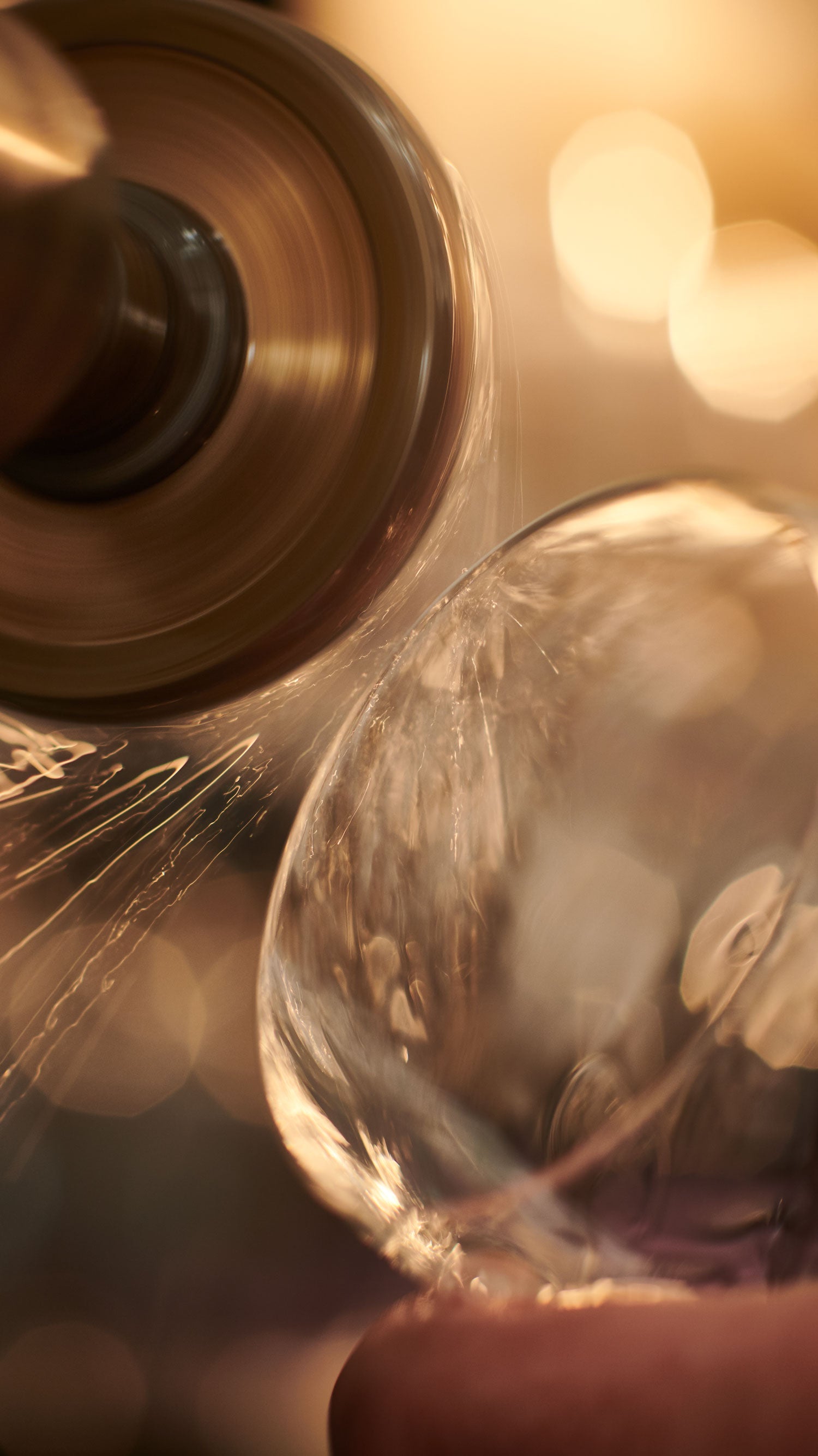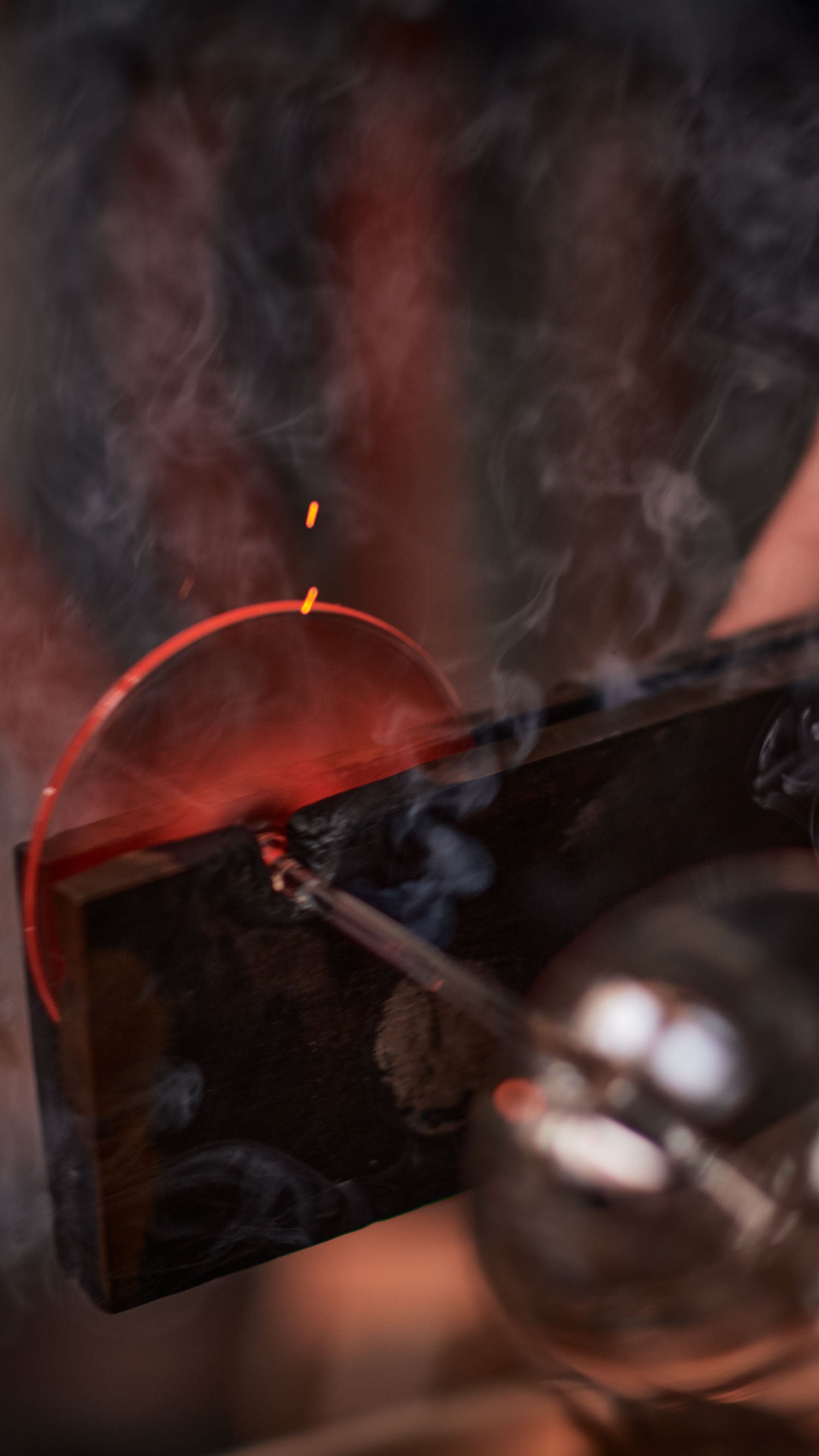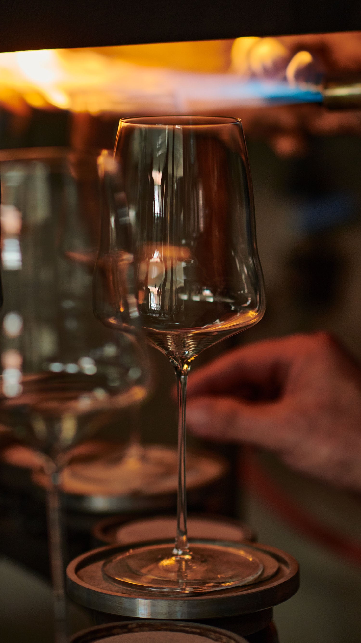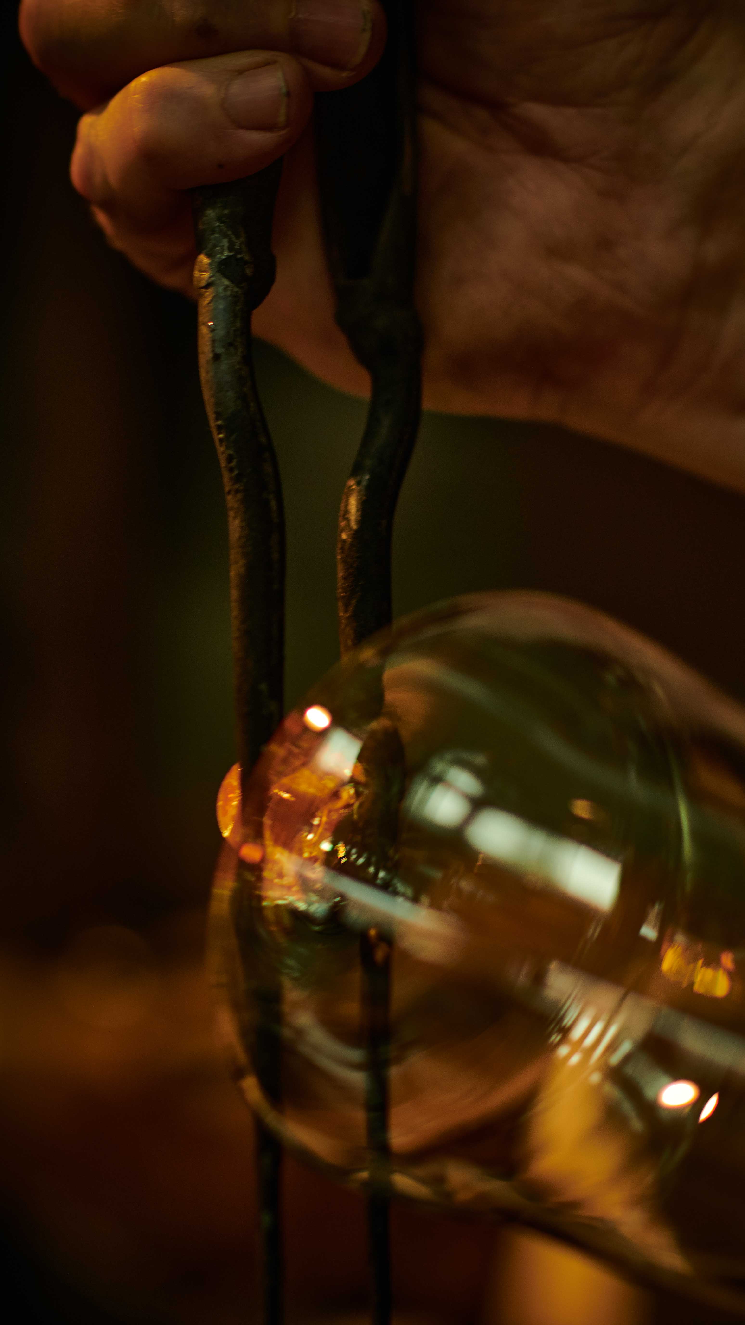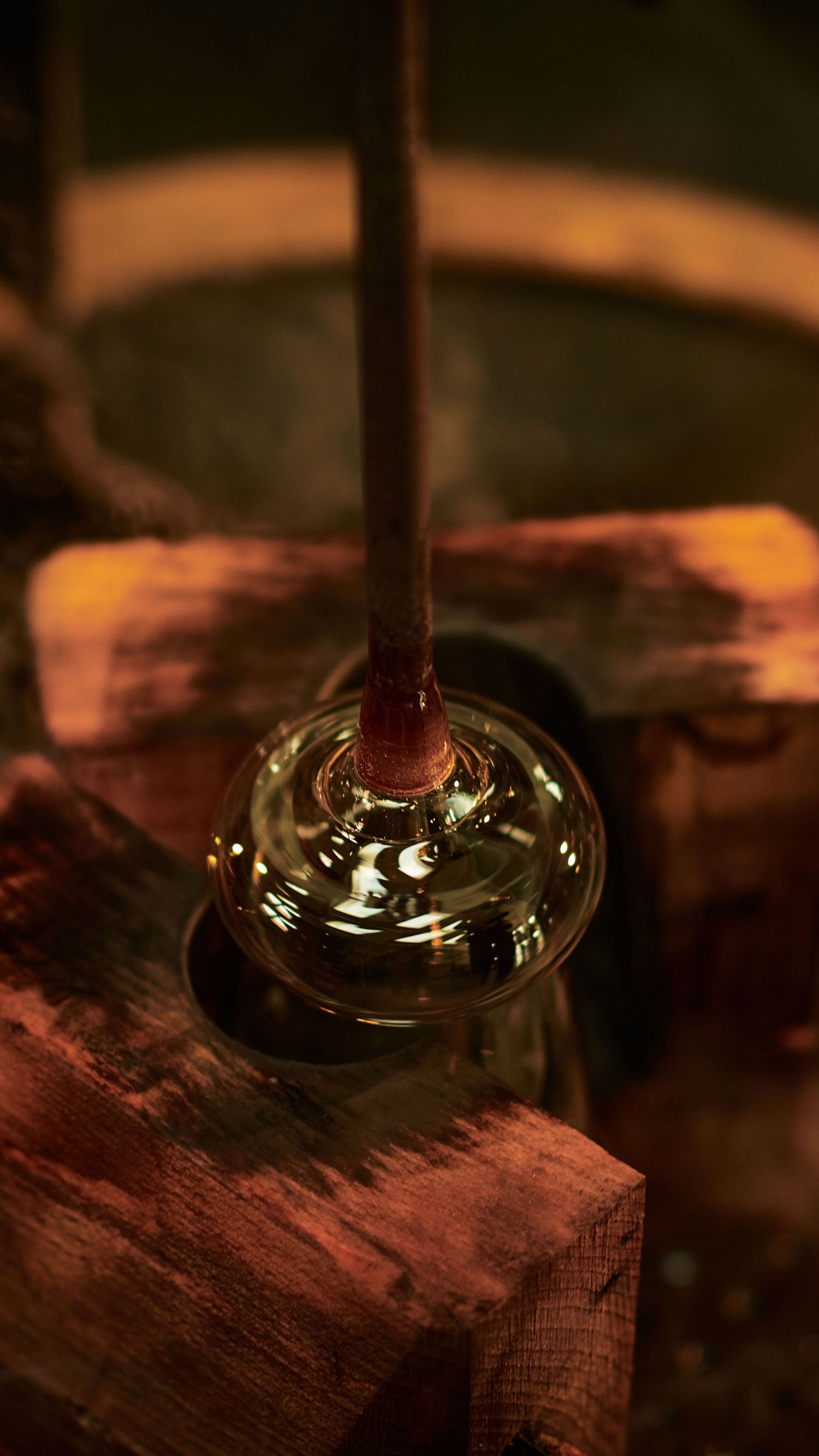 Traditional glassmaking is a millennia-old and precious craft to which we are deeply committed. The creation of a single glass takes several days and requires years of experience, exceptional skill, and delicate artistry from our glassmakers. Using simple, almost archaic tools, they produce glasses of the highest delicacy and precision. We choose only the finest artisans from their trade for this intricate work.
