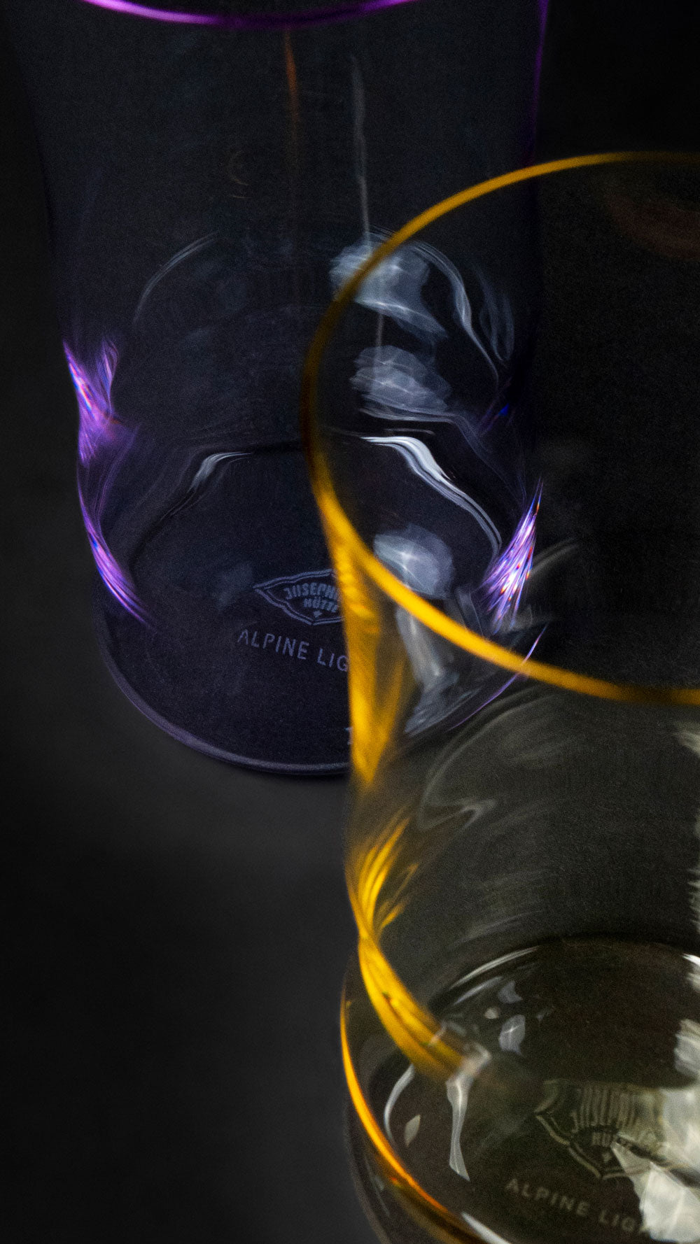 Just as sunlight dances across the Alpine peaks, the colors of these glasses shift with the changing light. Depending on the time of day, the drink inside, or the setting, the hues reflect differently – sometimes subtle and soft, other times vivid and radiant. Each glass offers a unique interplay of light and color, making every sip a little more extraordinary.