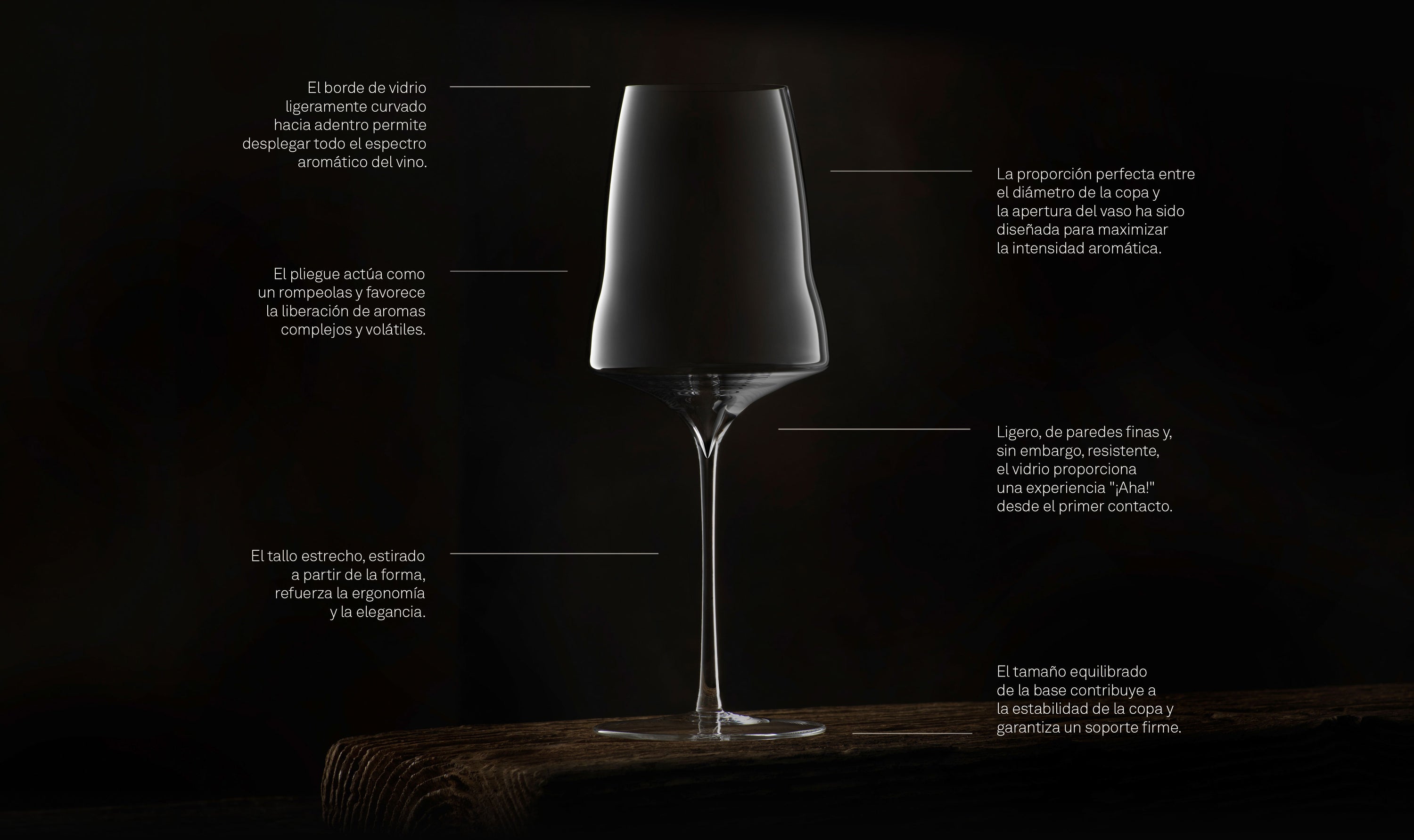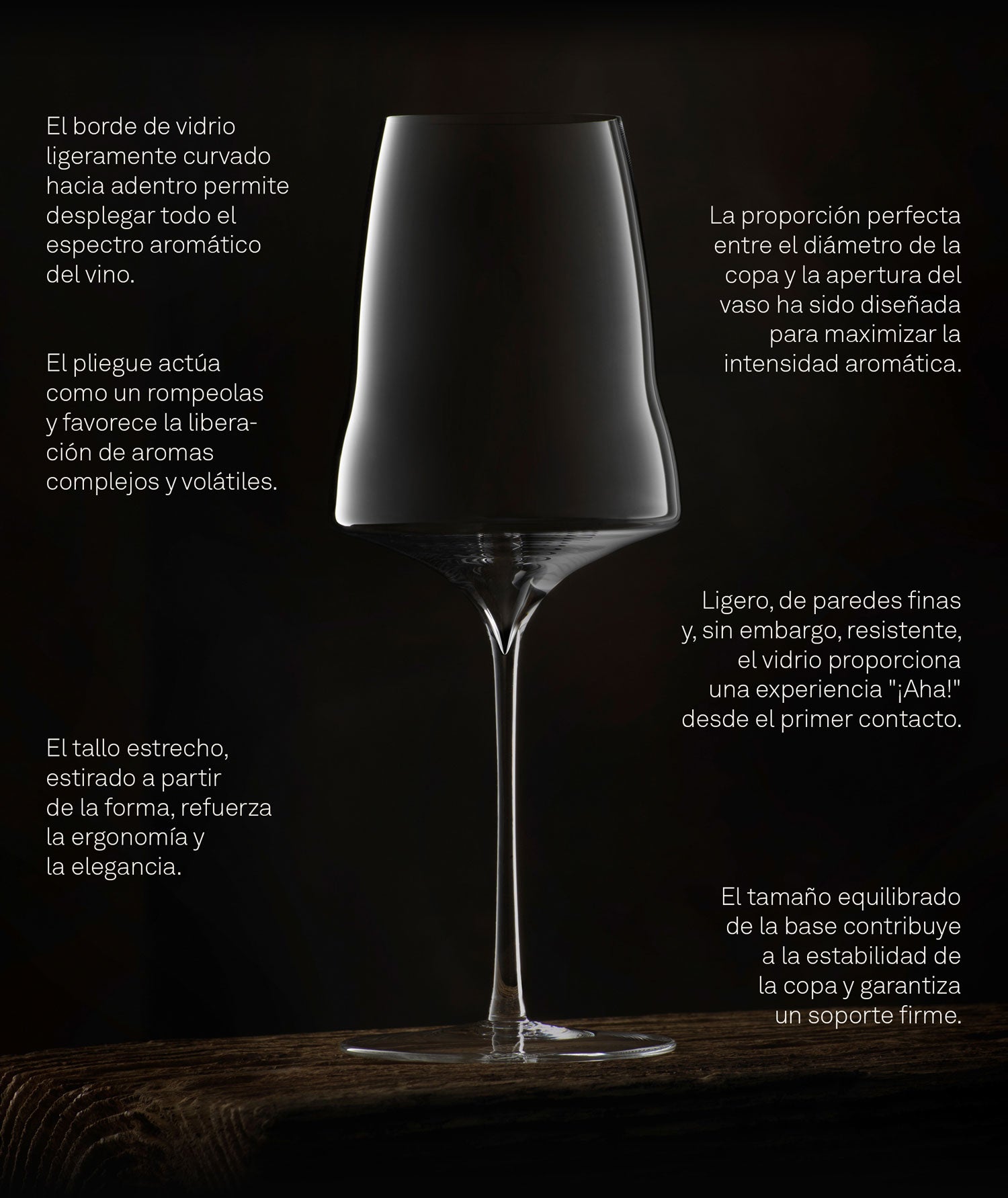 La forma de la copa tiene una gran influencia en el sabor del vino. Por ello, desarrollamos copas que llevan a otras dimensiones gracias a sus estructuras especiales.